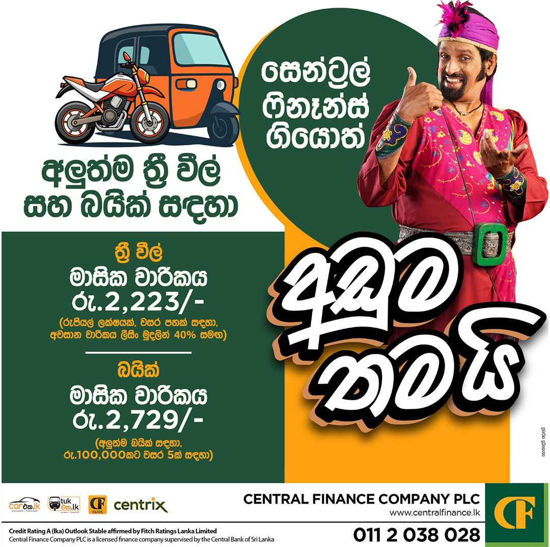 Providing dynamic and innovative financial solutions since 1957, Central Finance Company Plc is Sri Lanka’s leading financial house. With a range of services including Asset Leasing, Contract Hire, Fleet Management, Insurance Broking, Micro Finance and SME lending together with a broad portfolio of Savings and Deposit products, we help our customers fulfill their diverse financial needs and aspirations.