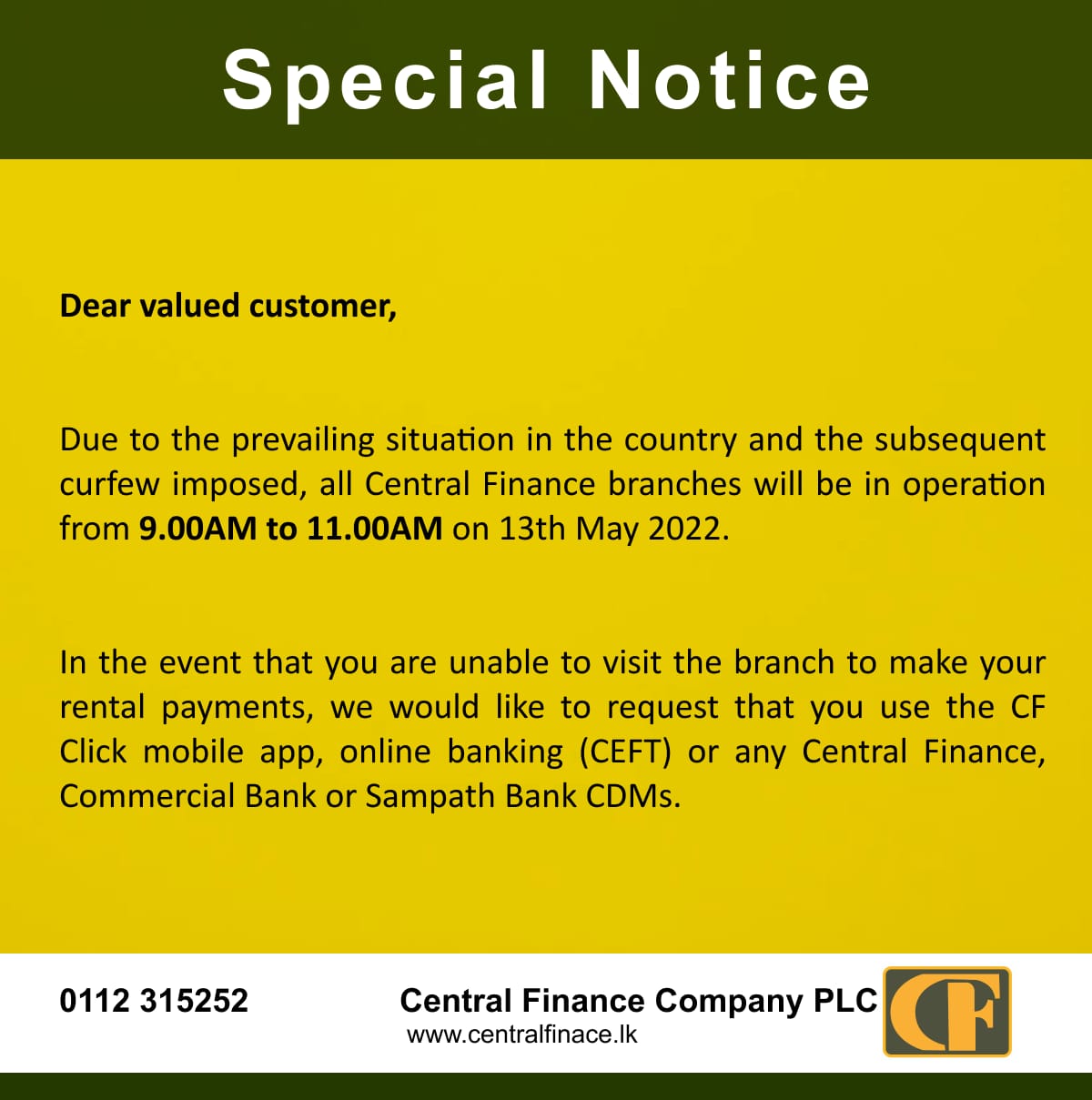 கிளை செயல்பாட்டு அறிவிப்புகள் 13 May 2022